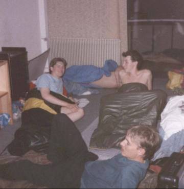 Staying over in the Thalion Office during Cebit 1990. Not counting the semi-naked body in the rear sleeping bag, three people are discernible here. The one in the middle at the right is Tyrem of TRB.