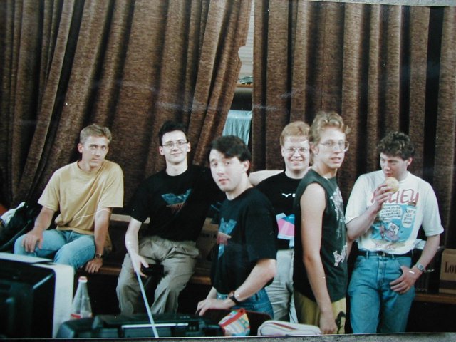 An interesting collection of nationalities. Left to right: Humungus, Dogue du Mauve and Mister Bee of Overlanders, Relayer of Aenigmatica/Quartermass Xperiment, Tanis of TCB and The Thrush (or something like that) of MCA.