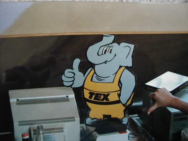 The Exceptions often lugged this cardboard elephant around on account of it representing the corporate presence of a similarly-named entity. The owner of the malicious thumb on the right was lucky that ES didn't spot him, or otherwise there would have been one fatality at the ICC #2.