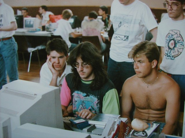 Probably something music-related going on... Left to right: ? (apparently interested in what's going on), Mad Max of TEX, Chris of The Garlic Eaters (not 100% sure?).