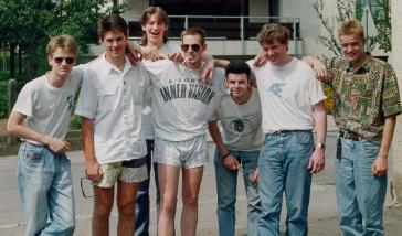 Group picture. Left to right: Diederik "CIA of Galtan 6" Hoogenboom, ?, Fabrice "Fury of Legacy" Odero, ?, Tim "Manikin of The Lost Boys" Moss, Tjeerd "Mysteria of Synergy" Bruinsma, ?.
