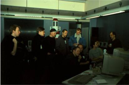 The auditorium. Left to right: Standing Zappy, Xbios Man of Overlanders, Dirk Pelz, ?, ?; sitting ?, ?, ?; standing at the far right Marc Rosocha. Damn, only 3 out of 9... Please someone help me!