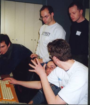 Grazey getting rapt attention. Left to right: Ben of Overlanders, Gunstick, Mad Max (barely visible, on the ground), Grazey, Stick of Ripped Off.