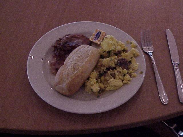Catering at the event was better than I had expected. I had expected it to be merely good, but it was in fact jaw-openingly excellent. Breakfast (in this case in Saturday) included muffins, scrambled eggs, bacon, a fine choice of bread and bread rolls, and various toppings (or whatever you call 'em).