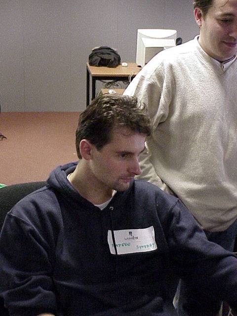 Robbert "Rapido of Synergy" van Dalen. This picture was taken on Saturday afternoon, by which time he had gone sober again. Friday night had seen him drink a little too much wodka (I seem to recall) and he'd become very verbose, to the bemusement of many.