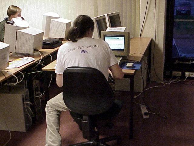 The original event organiser, Stefan "Digital Insanity of TLB" Posthuma, sitting behind the real-time article PC.