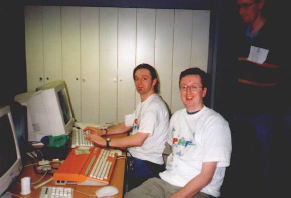 Computer with Dutch sympathies. These guys must have known that the Dutch royal house is called "Of Orange". Anyway, left to right Cal and Grazey of PHF, and Mr. Ni! of TOS Crew.