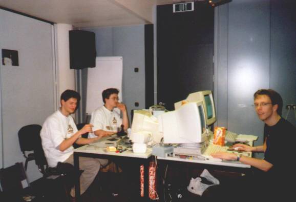The Dutch / Fun corner of the auditorium once again. Left to right: Joost "The Match" van Schoot, Matthijs "D-Force" Witteveen and ?.