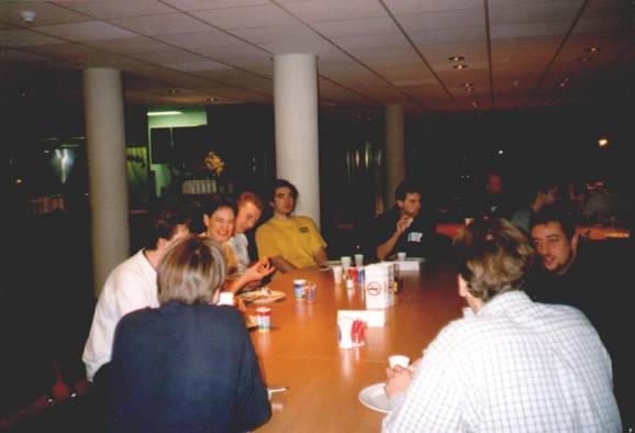 Table full of Frenchies (well, almost). Left to right: D-Force of Fun (in white), ? (in blue), The Match of Fun (smiling), ? (red hair), Zerkman of Sector One, Rapido of Synergy, Monsieur Derpin (in the front), ?.