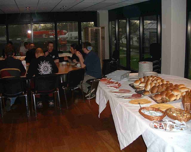 Breakfast. The front table, counterclockwise from the left: Mr. Ni! of TOS Crew, Homeboy of DDC, Grazey and Cal of PHF, Stick of Ripped Off.
