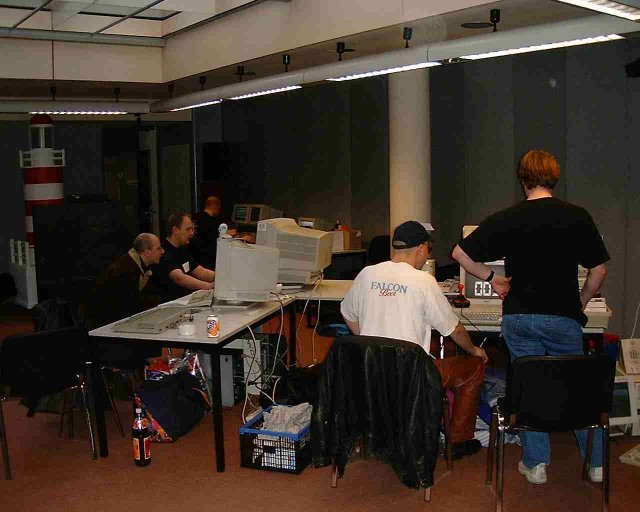 The auditorium. Left to right: ? (watching), ? (demonstrating), Homeboy of Double Dutch Crew (way in the back), Mad Butscher, ? (standing).