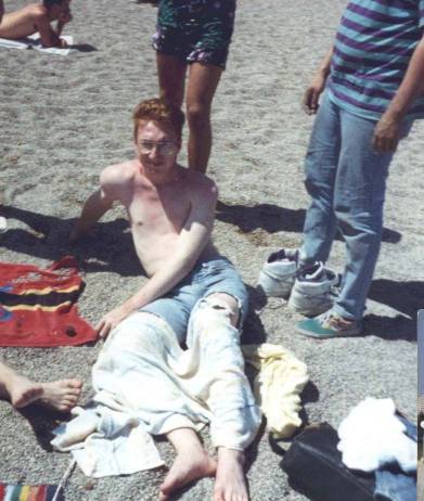 Andy setting out to be burnt to a crisp on the beach of the Cote d'Azur.