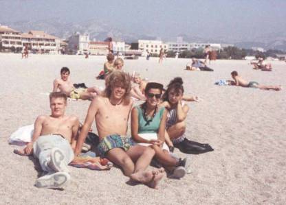 Well...for those of you (a jolly lot, probably) who believed the second person from the left is indeed a normally spam-clad hairdo rocker, this is in fact Sammy Joe. The girls don't want to be reminded of this particular summer.