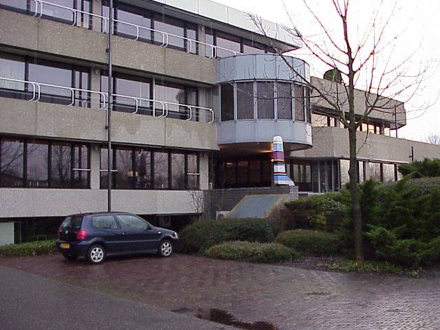 Saturday morning shot of the venue. We had at our disposal the entire 'second floor' (above car level) and the 'first floor' (actually more like a basement) to the right of the, um, brightly coloured phallic thingy. If you look carefully you'll see some people having breakfast just above the car.