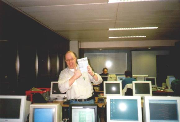 Cronos of QX posing with an Atari Magazine for which MC Laser writes.