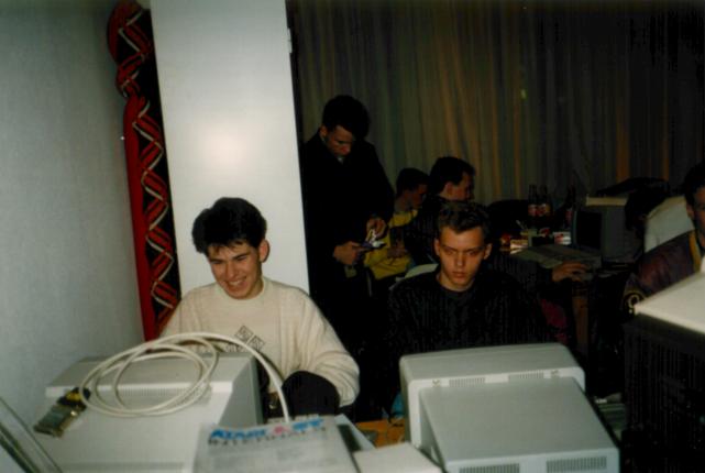 A bunch of Dutchies: Left EVE (Erik van Esch) and to the right Dr B (Servé Hermans), both at the time members of Galtan Six. The copy of "ST Internals", way in the front, is proudly owned by Chris of The Watchmen.