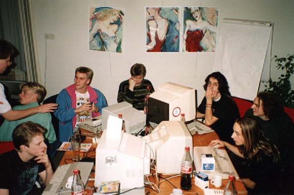The TCB/TLB room at the convention - left to right Daryl of TEX, Tanis of TCB, ?, An Cool of TCB, Nic of TCB, Spaz of TLB, Sprog of TLB and Chris of the Watchmen.